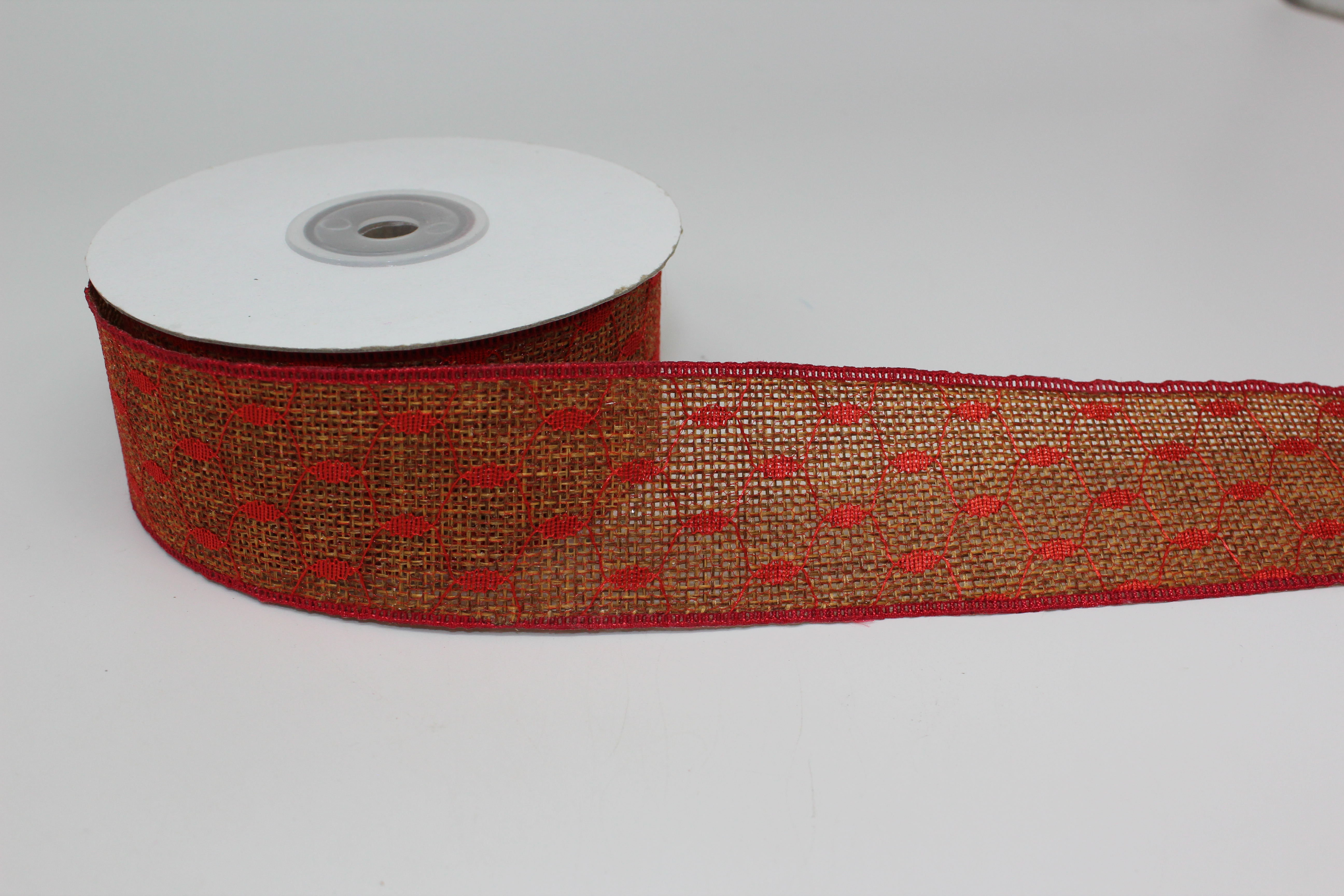 Лента мешковина 4 см 10 ярдов с красным узором