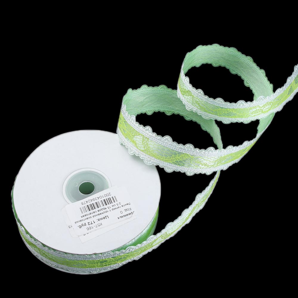 Лента гипюр 2,5 см 15 ярдов с кружевной окантовкой салатовая 10