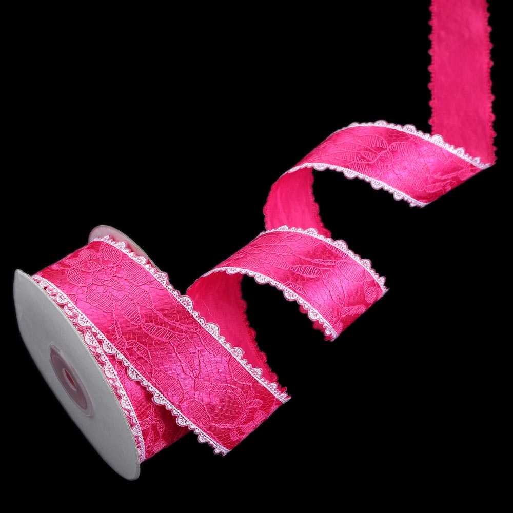 Лента гипюр 3,8 см 15 ярдов с кружевной окантовкой фуксия 5