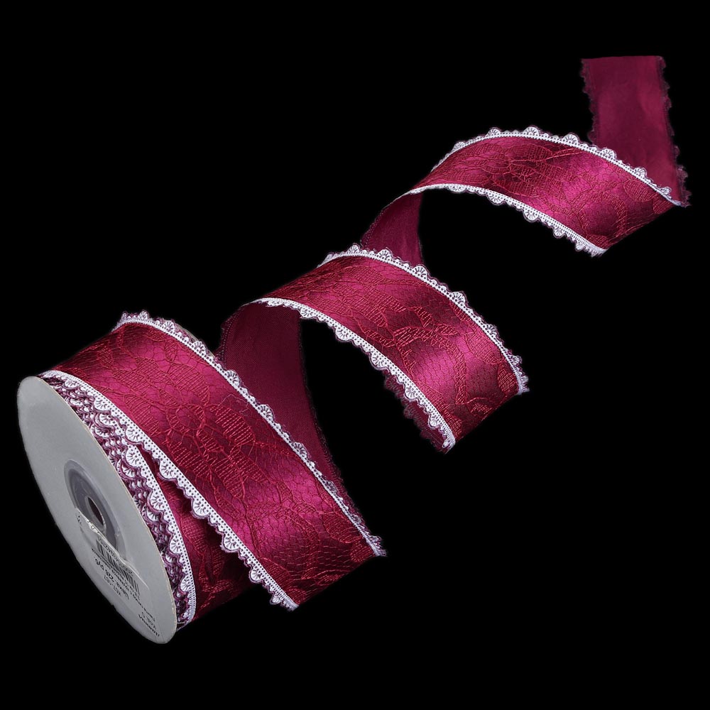 Лента гипюр 3,8 см 15 ярдов с кружевной окантовкой бордо 2