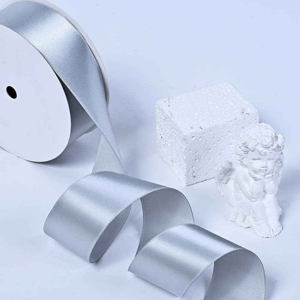 1"(25mm)Single Face Satin Ribbon 009 односторонняя сатиновая лента 10 ярдов светло серая