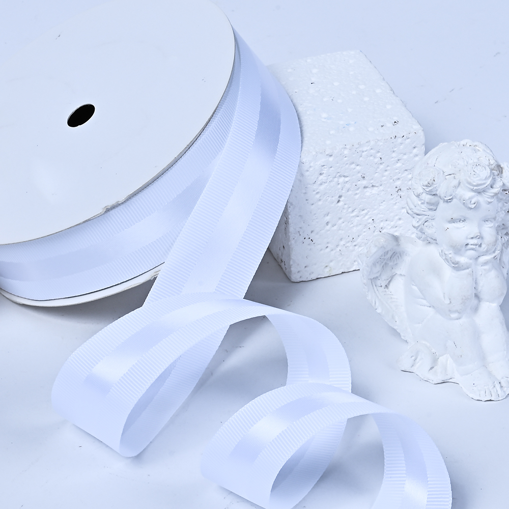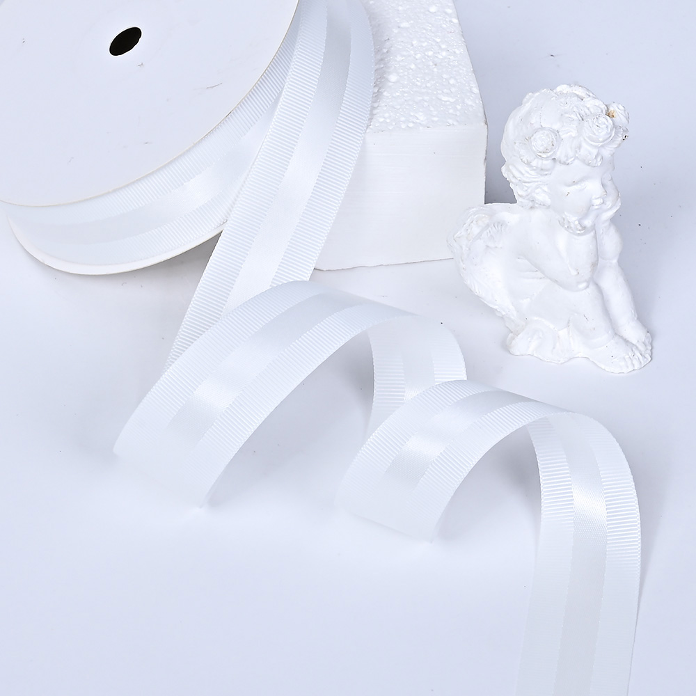 1"(25mm) Grosgrain edge satin Ribbon 029 репсовая лента с сатином 23 ярда белая