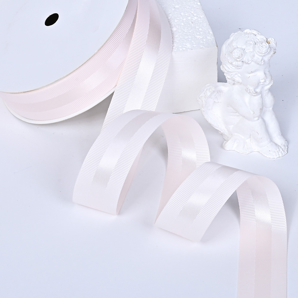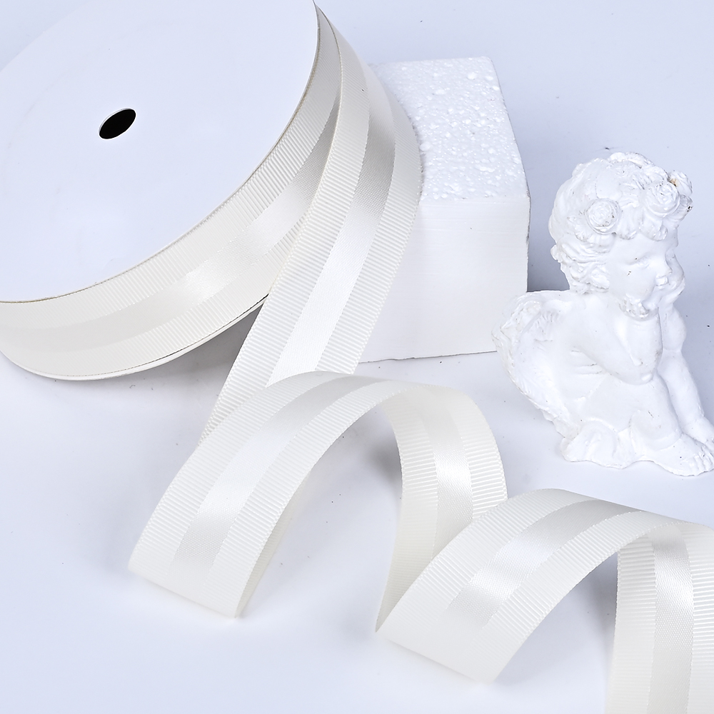 1"(25mm) Grosgrain edge satin Ribbon 028 репсовая лента с сатином 23 ярда айвори