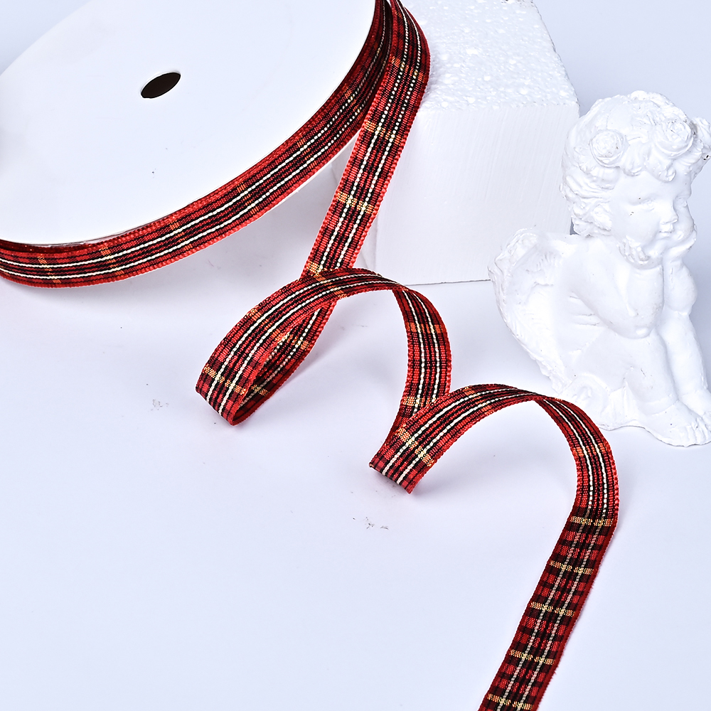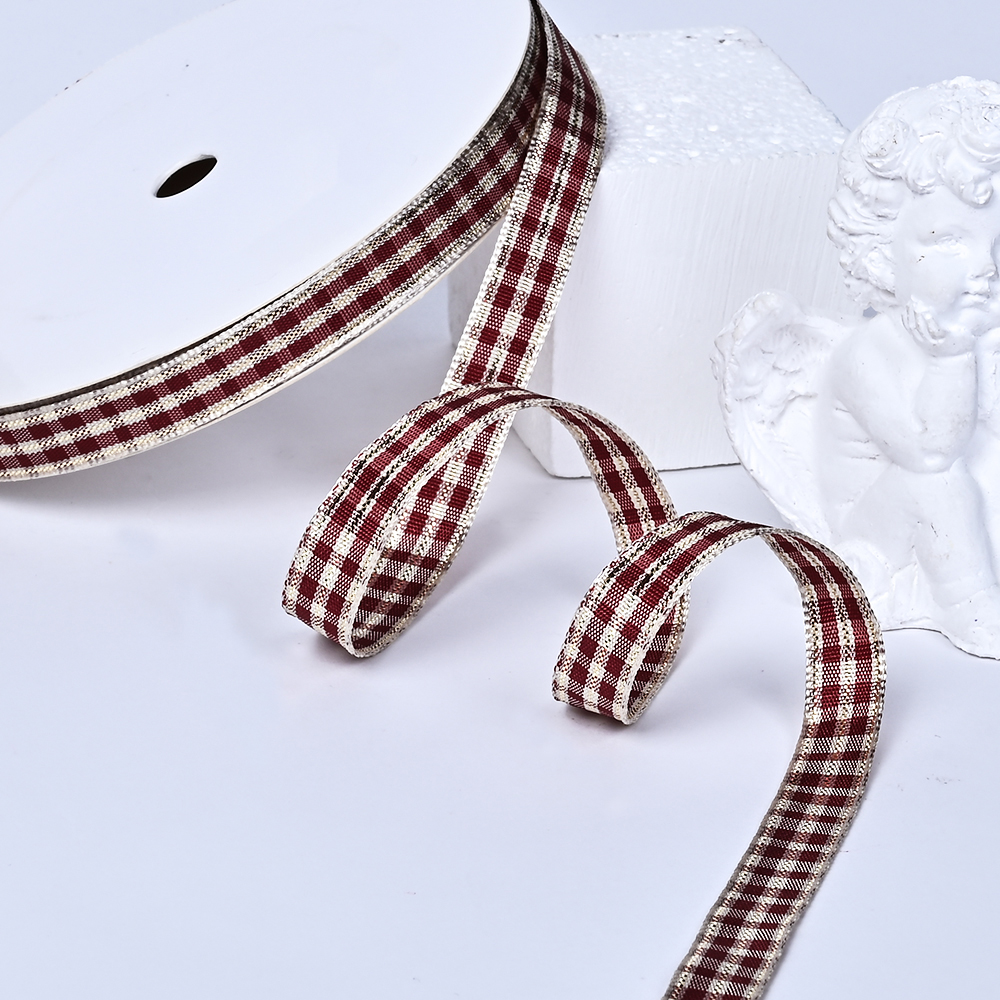 1"(25mm)Gingham Ribbon B006 лента тканевая в клетку 10 ярдов бордовая