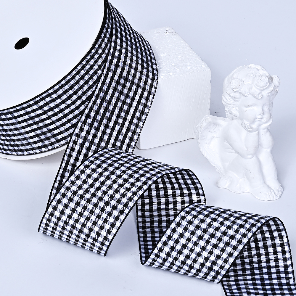 1-1/2"(38mm)Gingham Ribbon A054 лента тканевая в мелкую клетку 10 ярдов чёрная