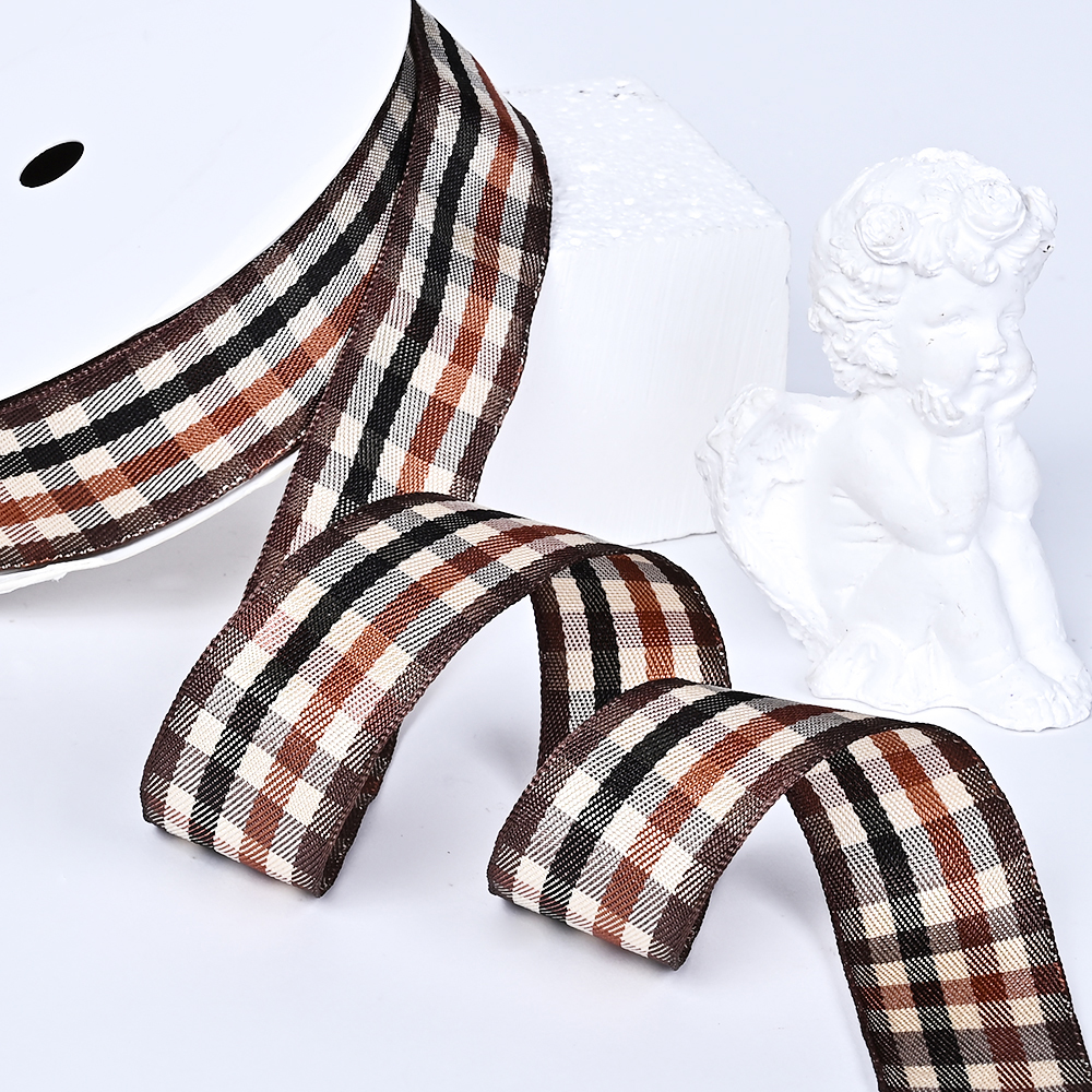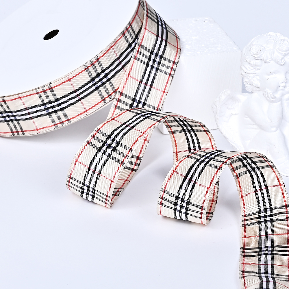 1"(25mm)Gingham Ribbon B004 лента тканевая в крупную клетку 10 ярдов бежевая