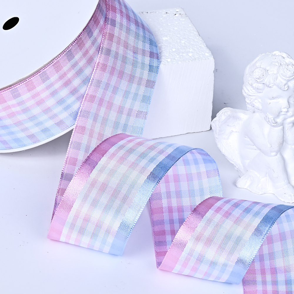 1-1/2"(38mm)Gingham Ribbon B008 лента тканевая в клетку 10 ярдов сиреневый градиент