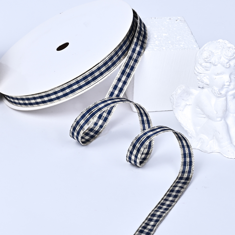1"(25mm)Gingham Ribbon A066 лента тканевая в мелкую клетку 10 ярдов тёмно синяя