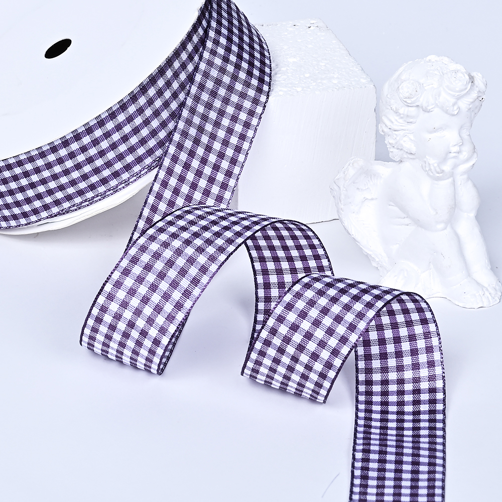 1"(25mm)Gingham Ribbon A049 лента тканевая в мелкую клетку 10 ярдов сиреневая