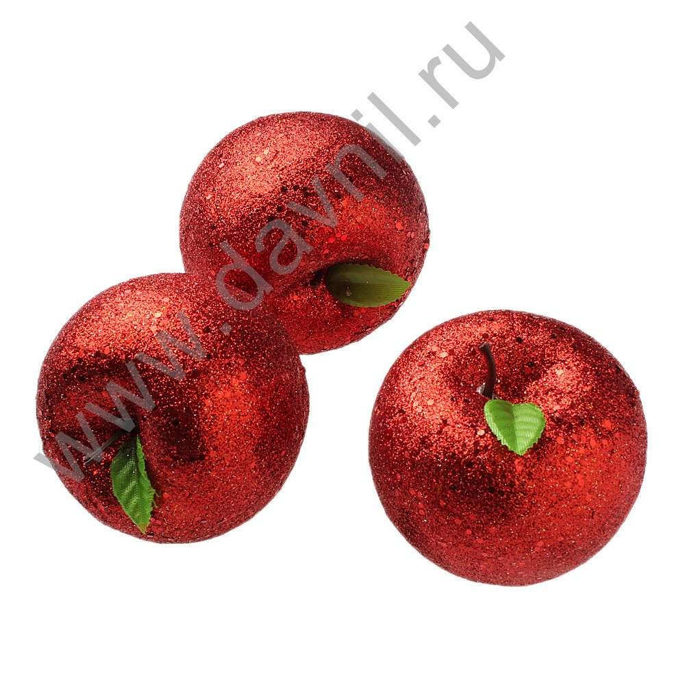 Муляж яблоко с листом 8,5 см 12 шт. красный глиттер