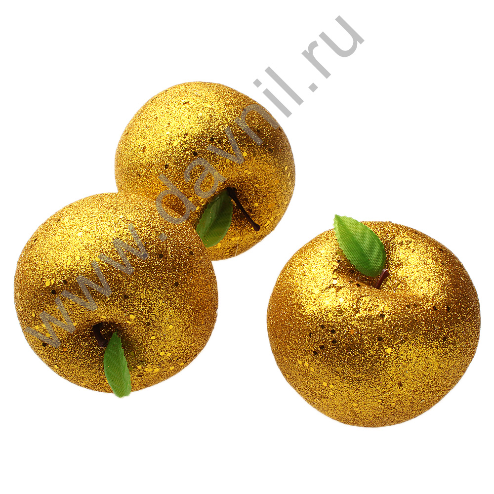 Муляж яблоко с листом 8,5 см 12 шт. золотой глиттер