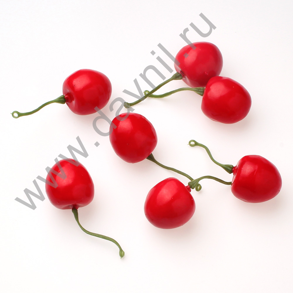 Муляж вишни на черешке 2,5 см 100 шт. красный