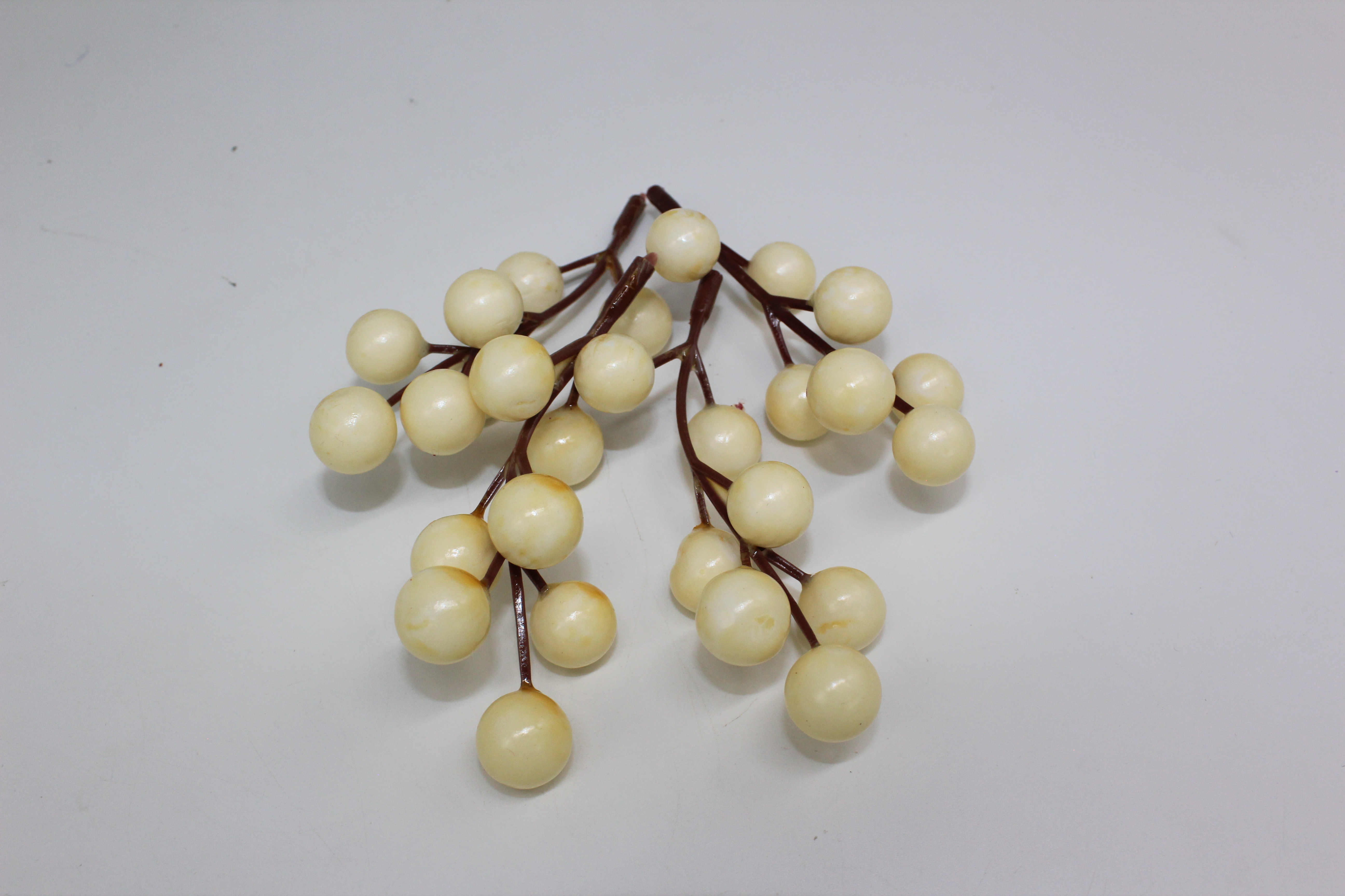 Ветка рябины 7 ягод 10 шт айвори на тёмной ножке