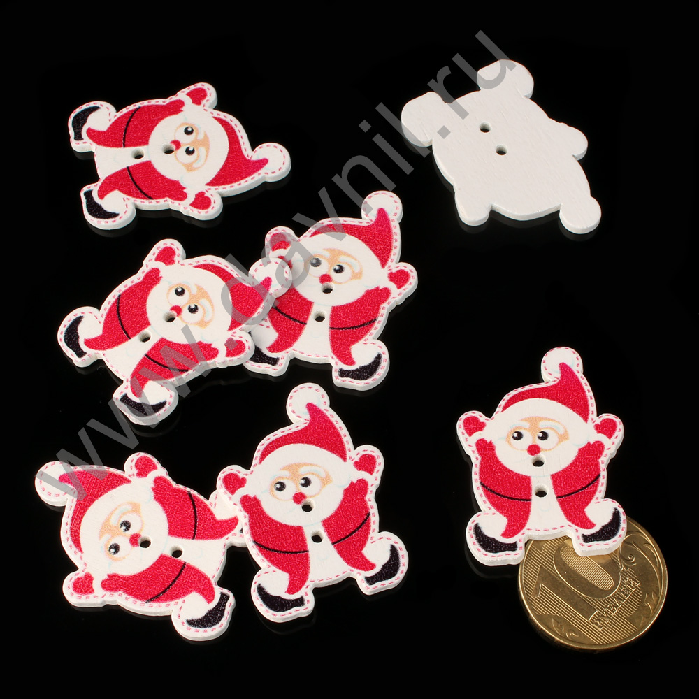 Кабошон пришивной "Санта Клаус" деревянный 20 шт.