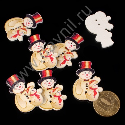 Кабошон пришивной 0020 " Снеговики " деревянный 1000 шт