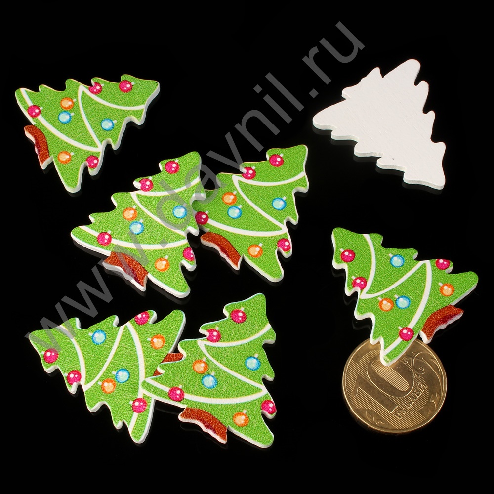 Кабошон самоклейка 0023 "Елка" деревянный 20 шт