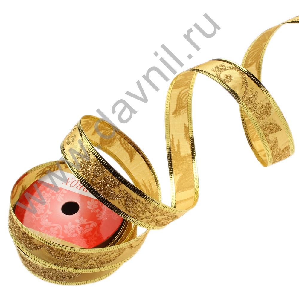 Лента декоративная с проволочным краем 2,5 см* 2,7 м светло-бежевая 7/7