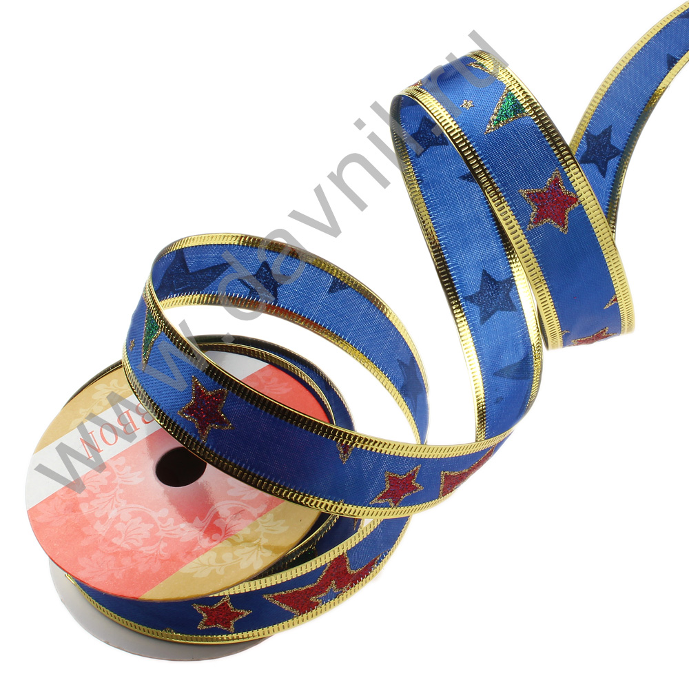 Лента декоративная с проволочным краем 2,5 см* 2,7 м синяя 4/6