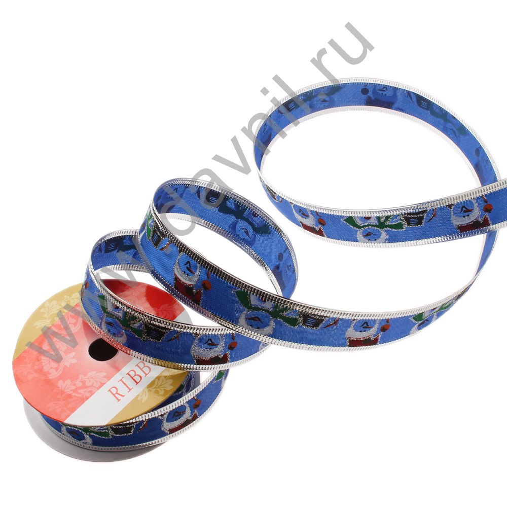Лента декоративная с проволочным краем 2,5 см* 2,7 м синяя 4/7