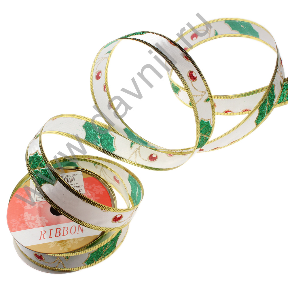 Лента декоративная с проволочным краем 2,5 см* 2,7 м белая 4/3