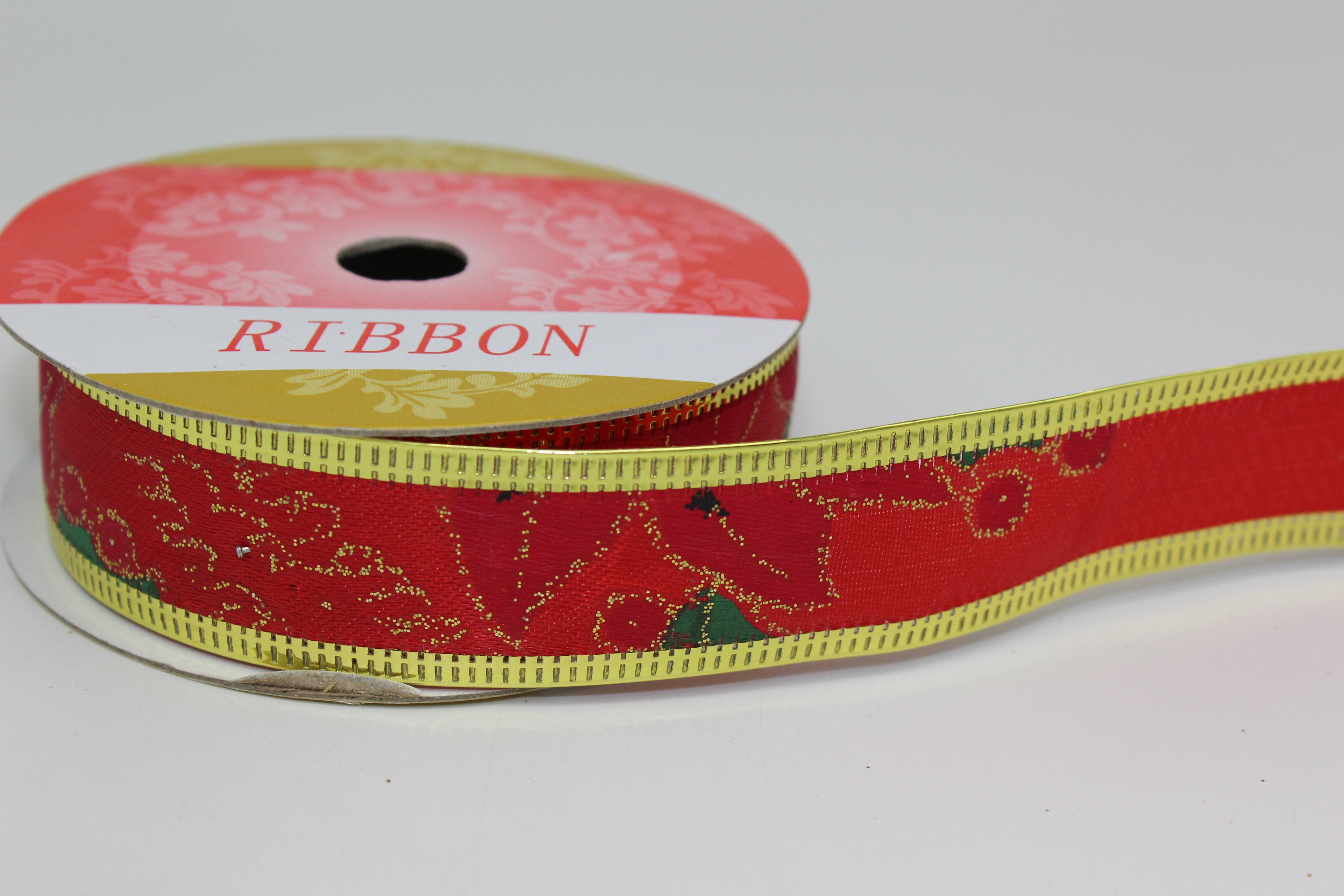 Лента декоративная с проволочным краем 2,5 см* 2,7 м красная 4/1