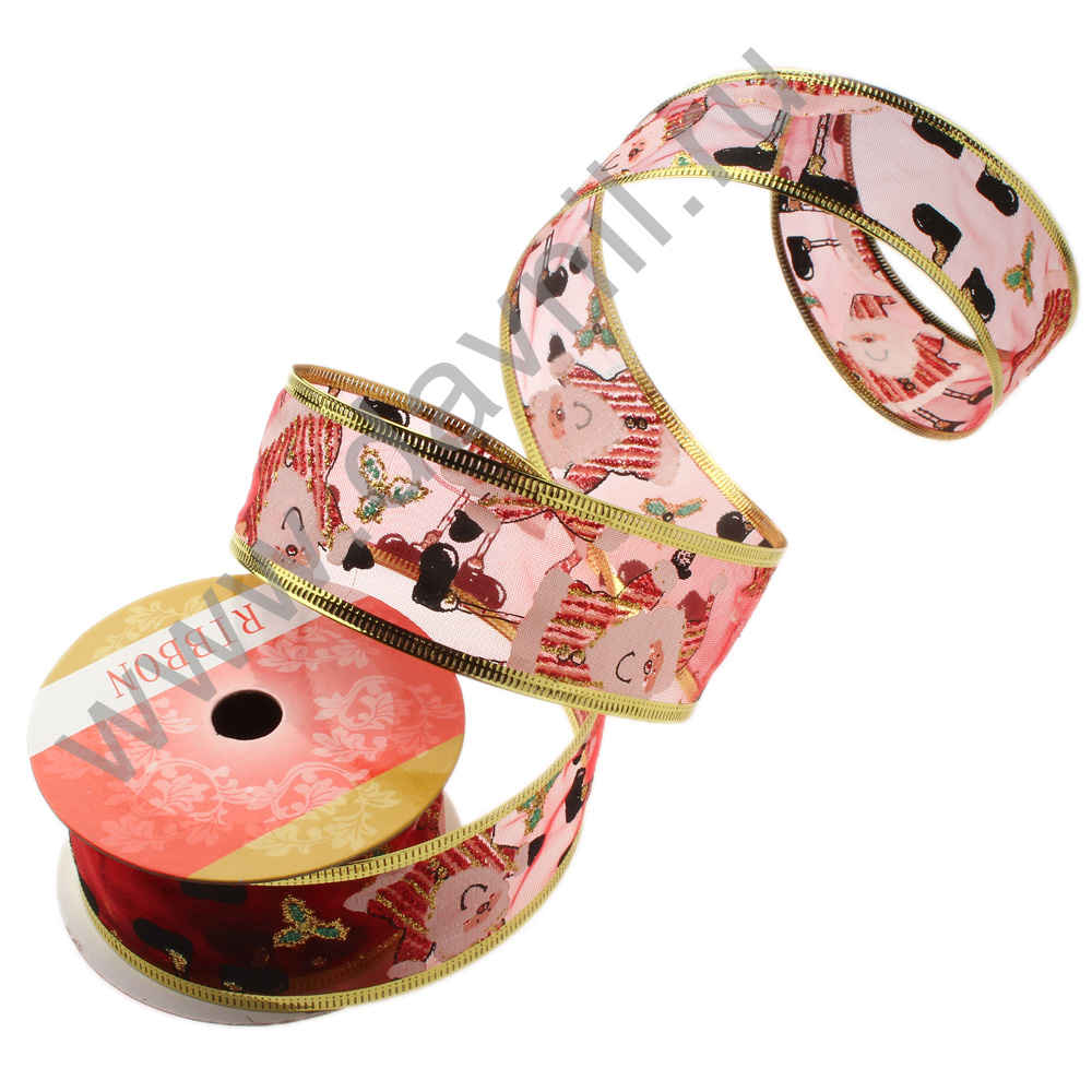 Лента декоративная с проволочным краем 3,8 см*2,7 м красная 9/8