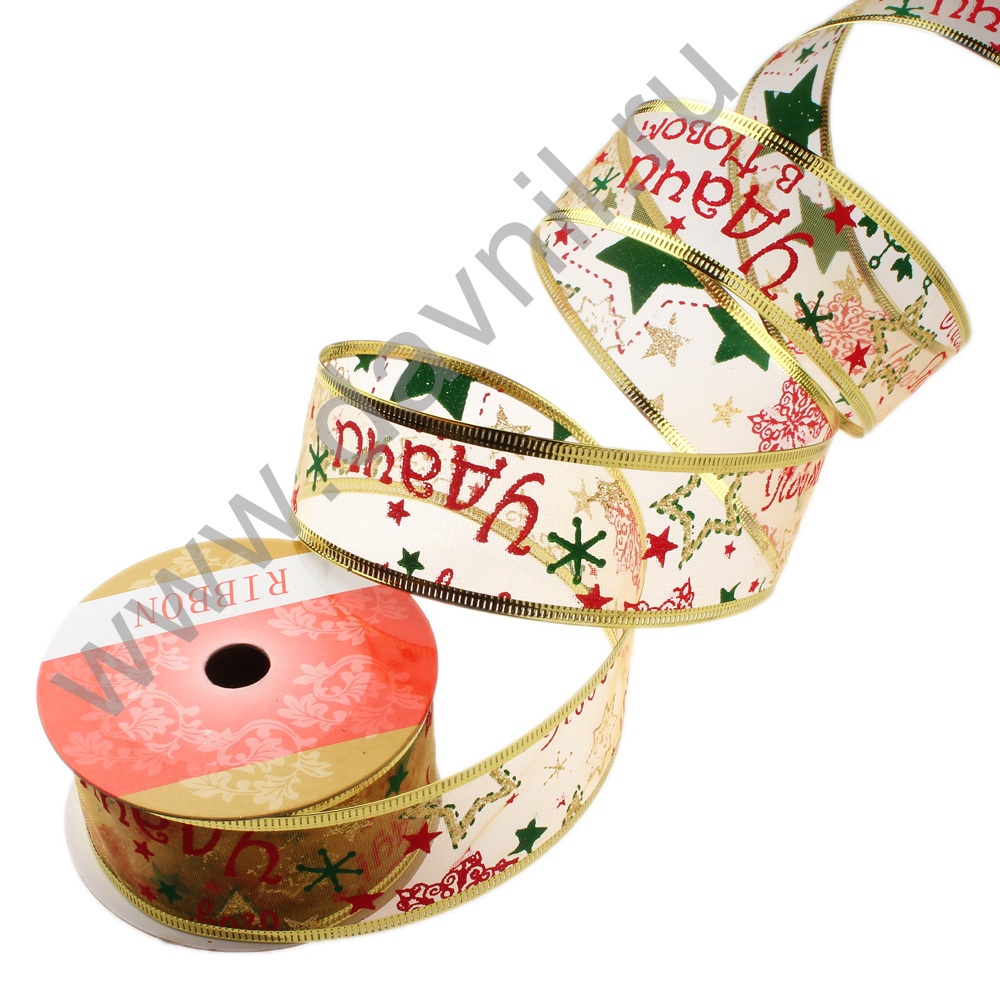 Лента декоративная с проволочным краем 3,8 см*2,7 м золотая 9/2
