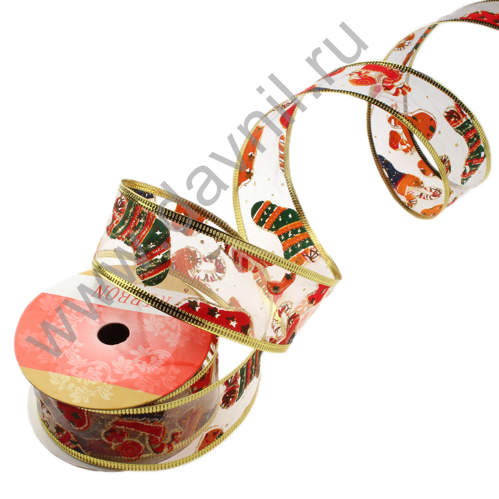 Лента декоративная с проволочным краем 3,8 см*2,7 м белая 9/7