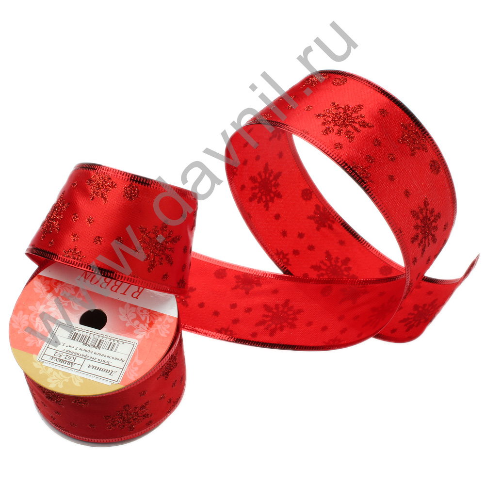 Лента декоративная с проволочным краем 5 см* 2,7 м красная 5/2