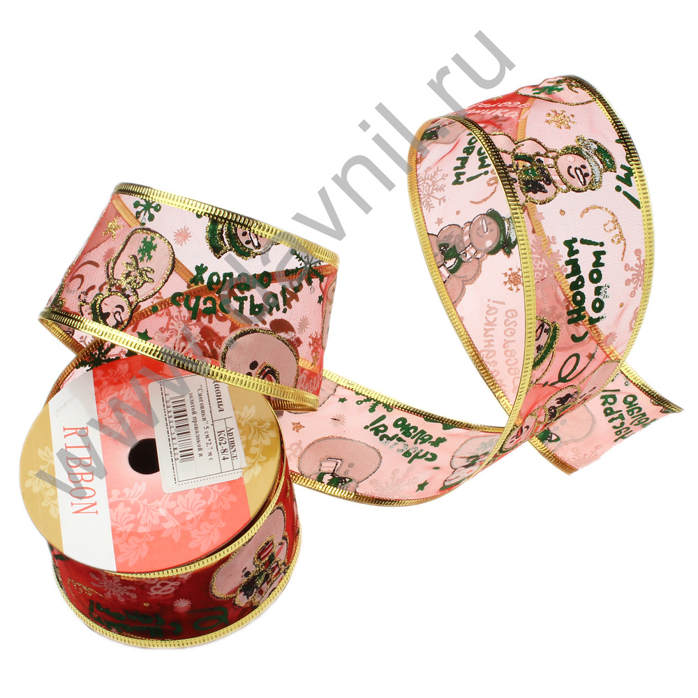 Лента декоративная с проволочным краем 5 см*2,7 м красная 8/4