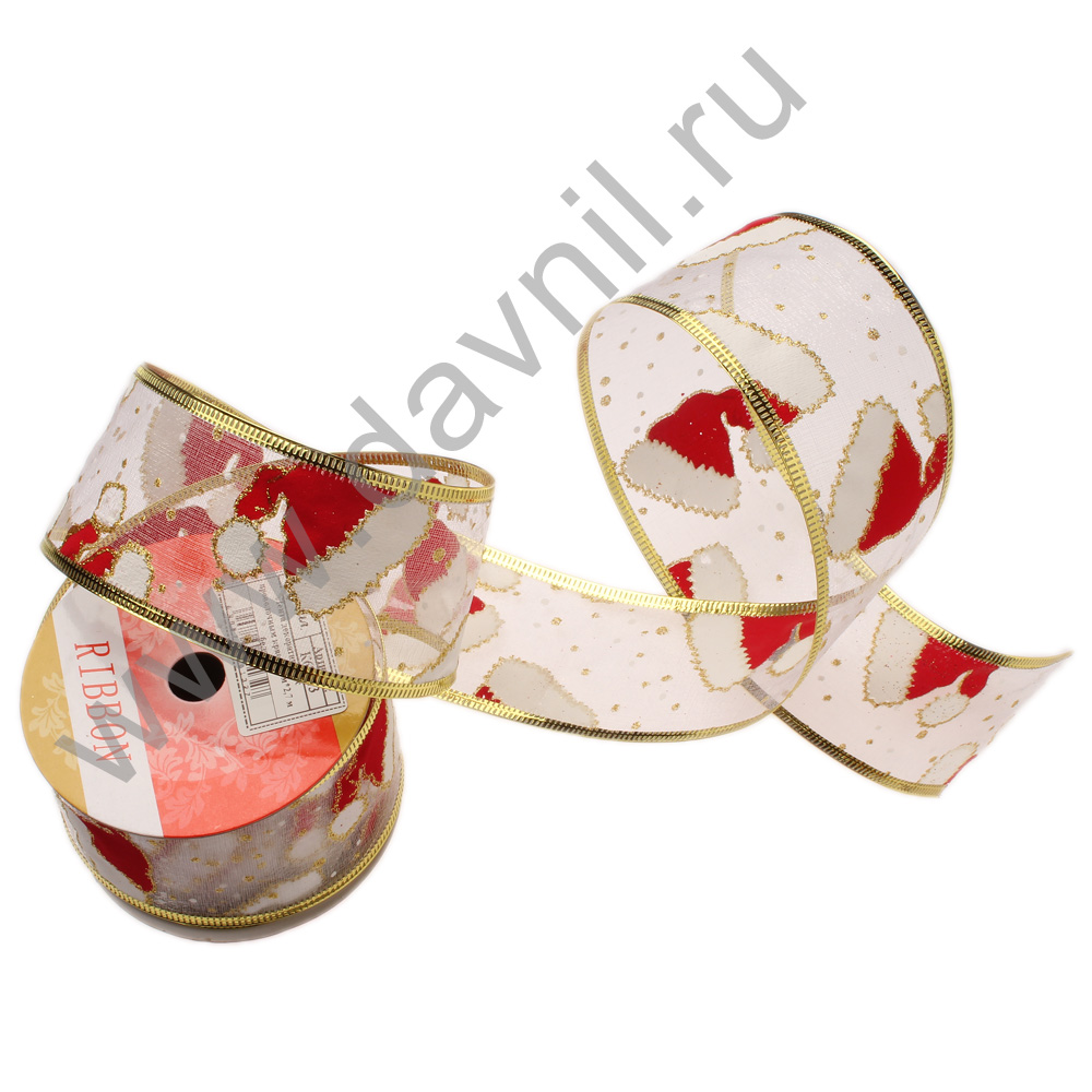 Лента декоративная с проволочным краем 5 см*2,7 м белая 8/3