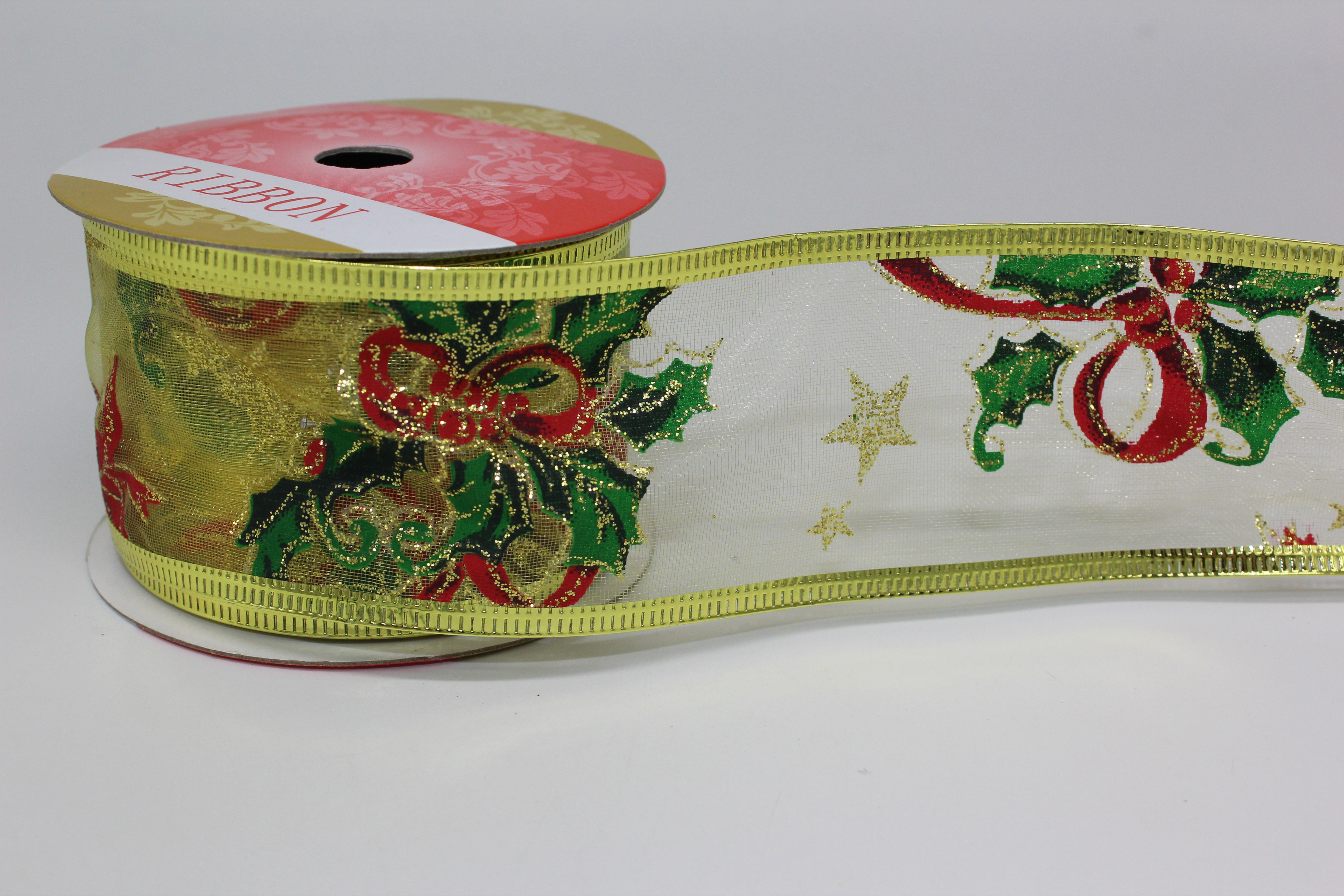 Лента декоративная с проволочным краем 5 см*2,7 м золотая 8/8