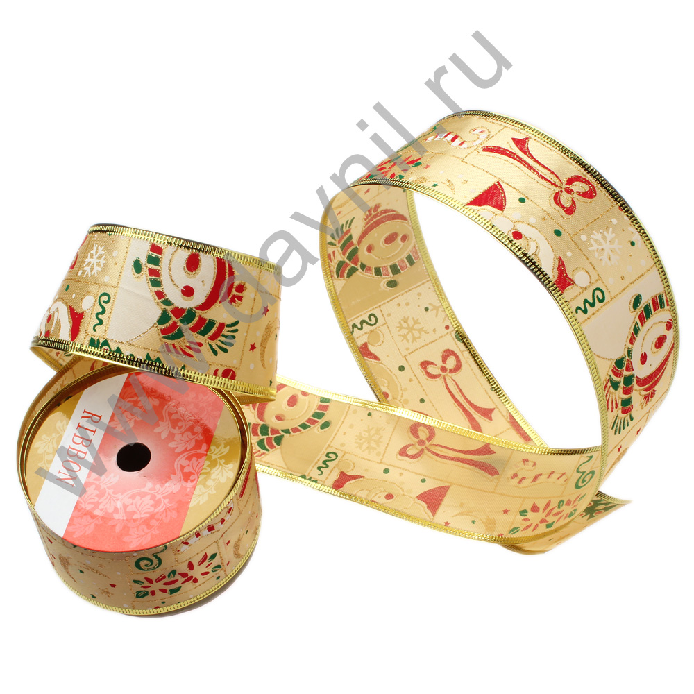 Лента декоративная с проволочным краем 5 см* 2,7 м золотая 2/4