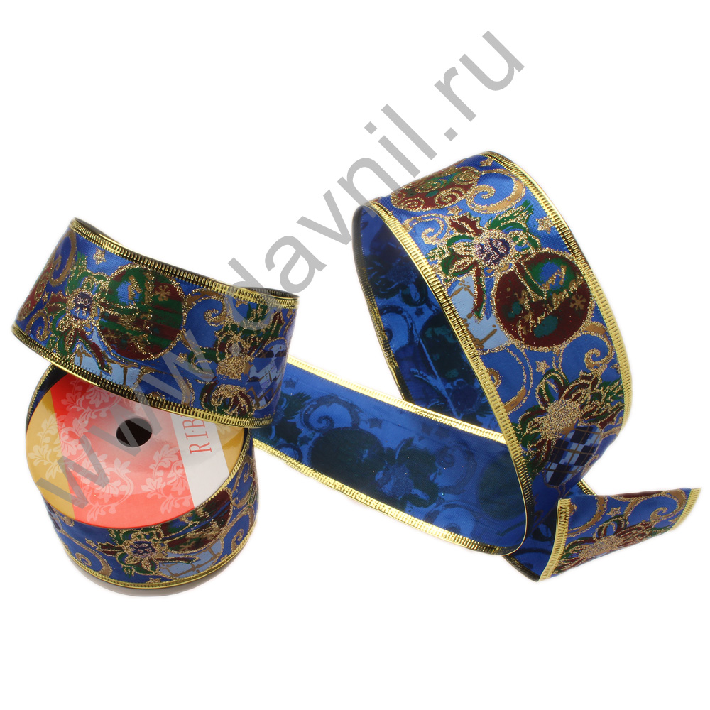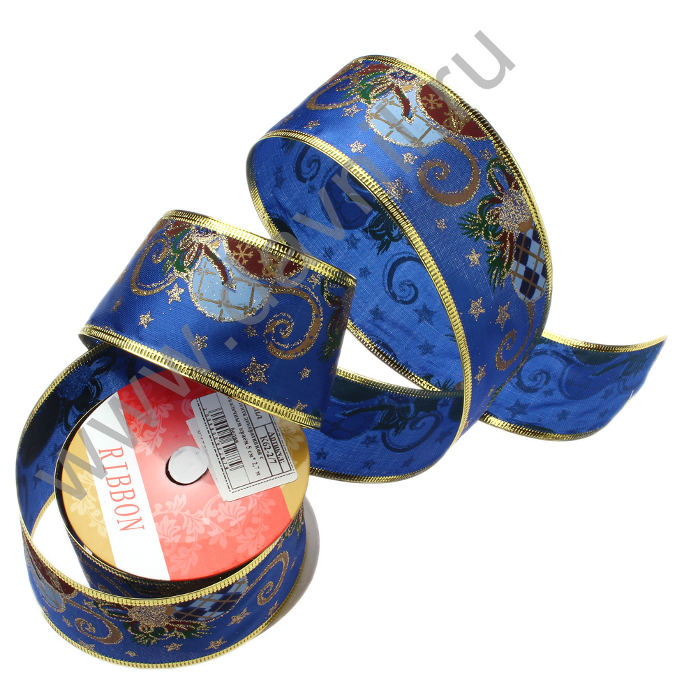 Лента декоративная с проволочным краем 5 см* 2,7 м синяя 2/7