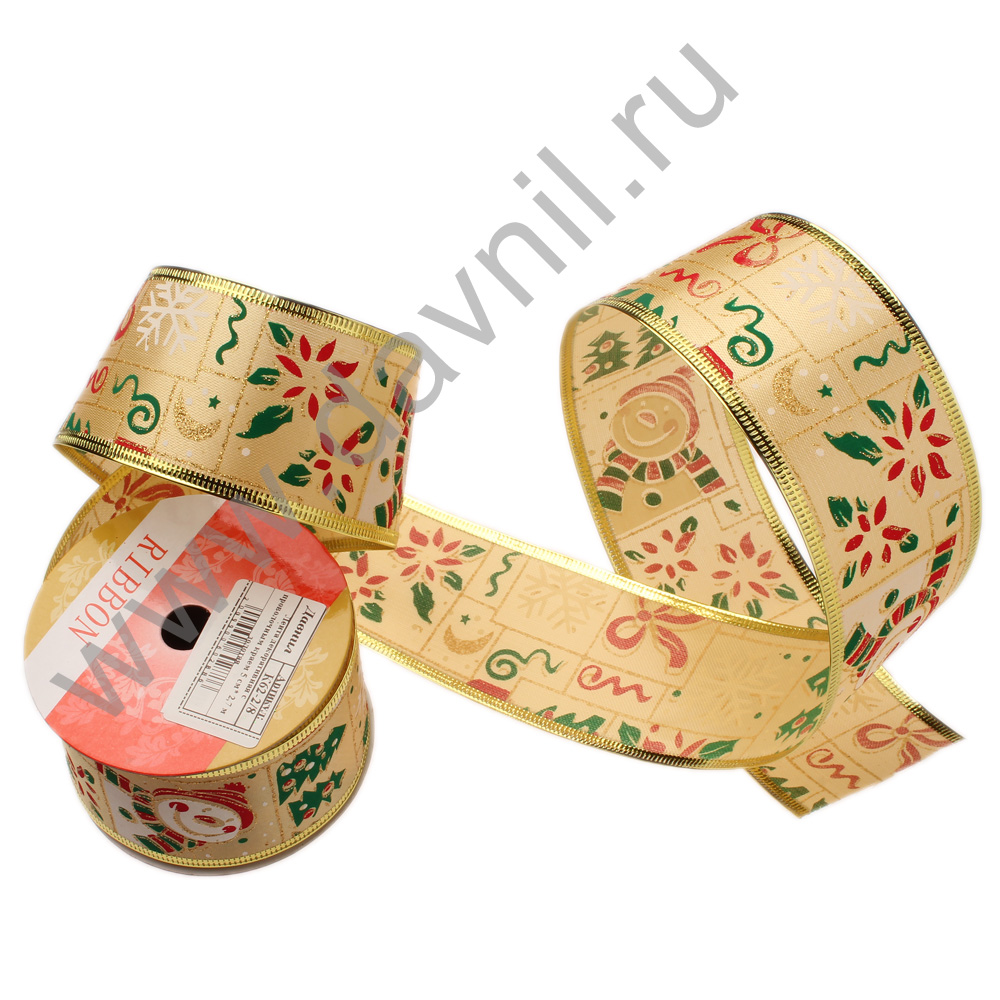 Лента декоративная с проволочным краем 5 см* 2,7 м золотая 2/8
