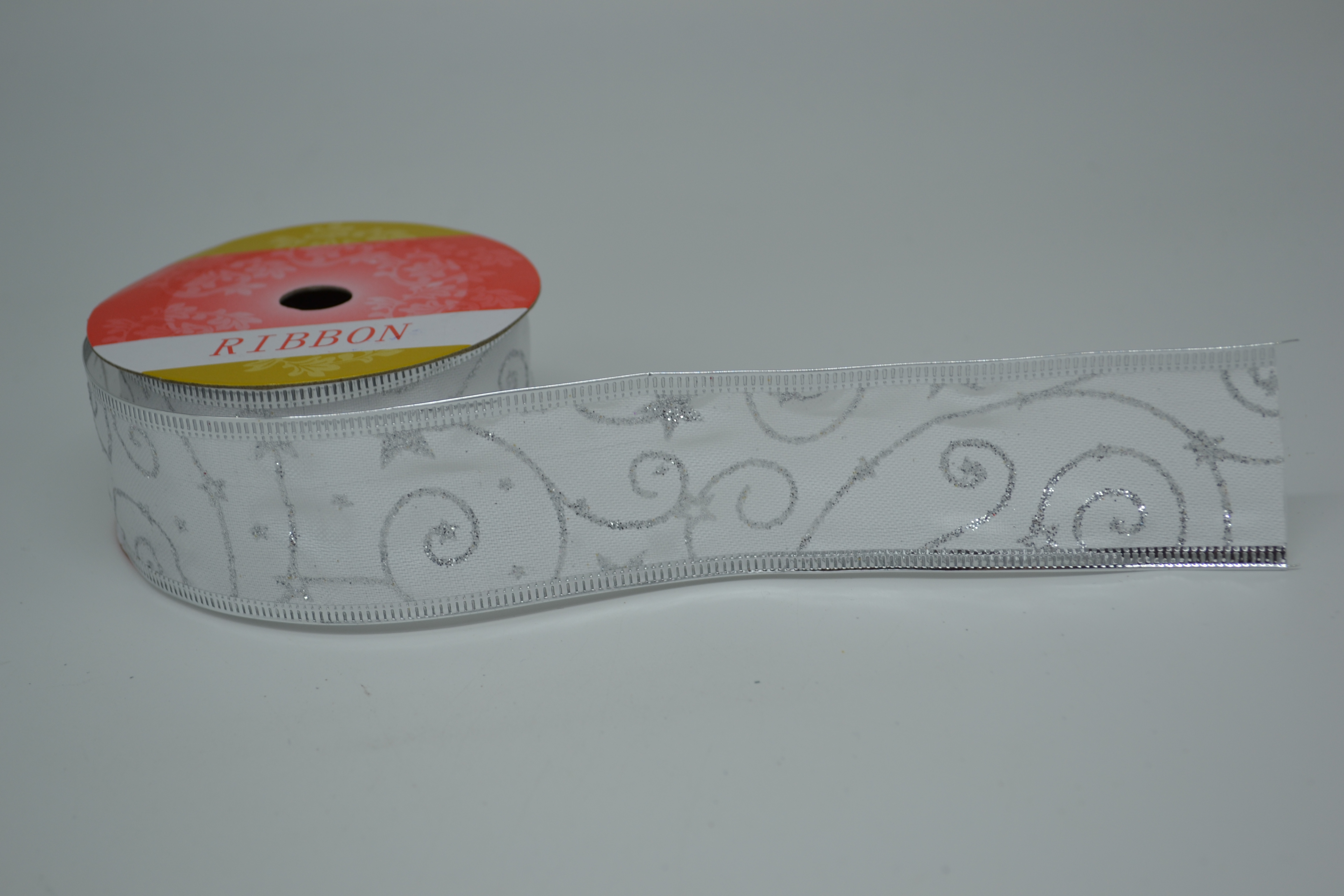 Лента декоративная с проволочным краем 3,8 см* 2,7 м белая 6/15