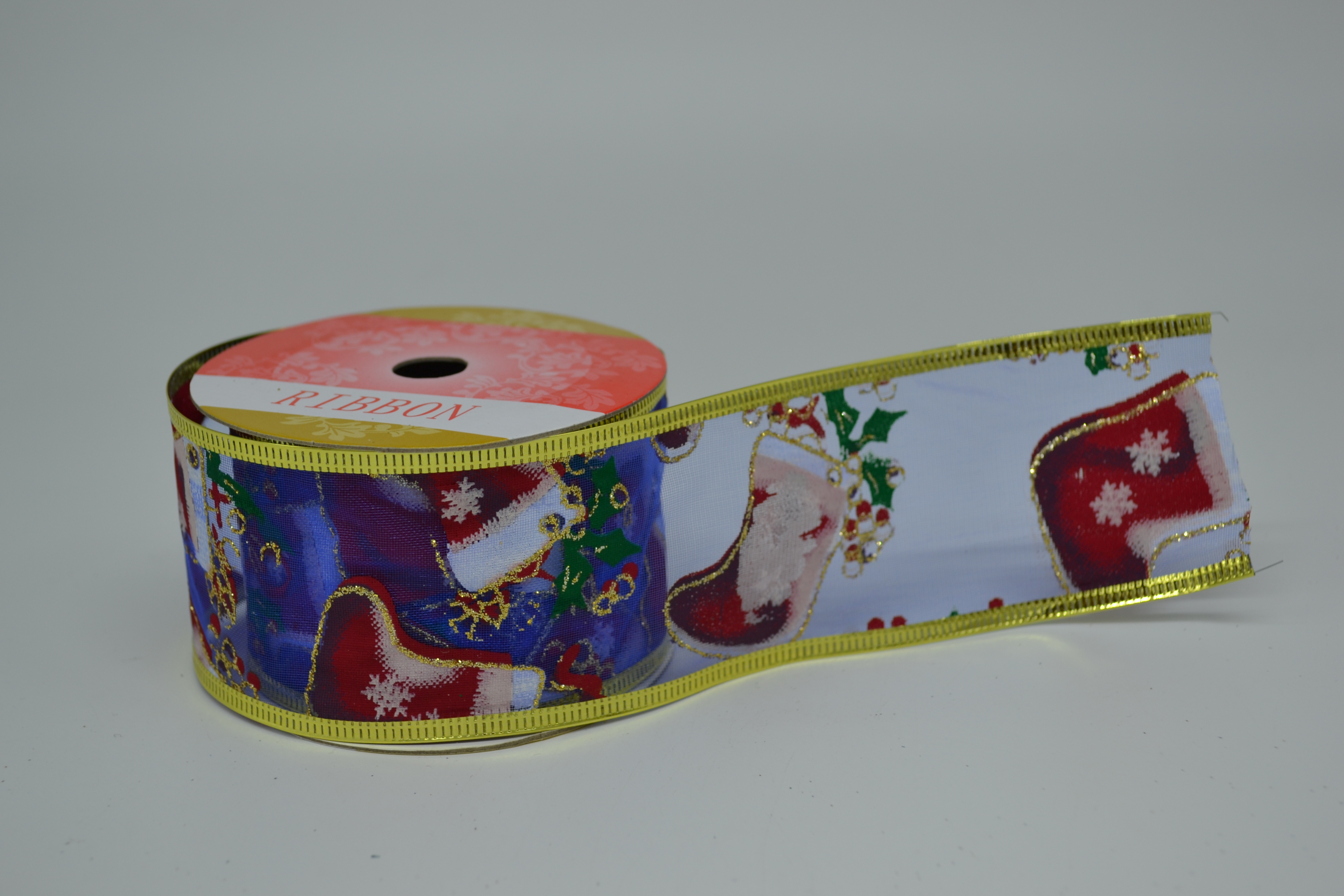Лента декоративная с проволочным краем 5 см*2,7 м синяя 8/14