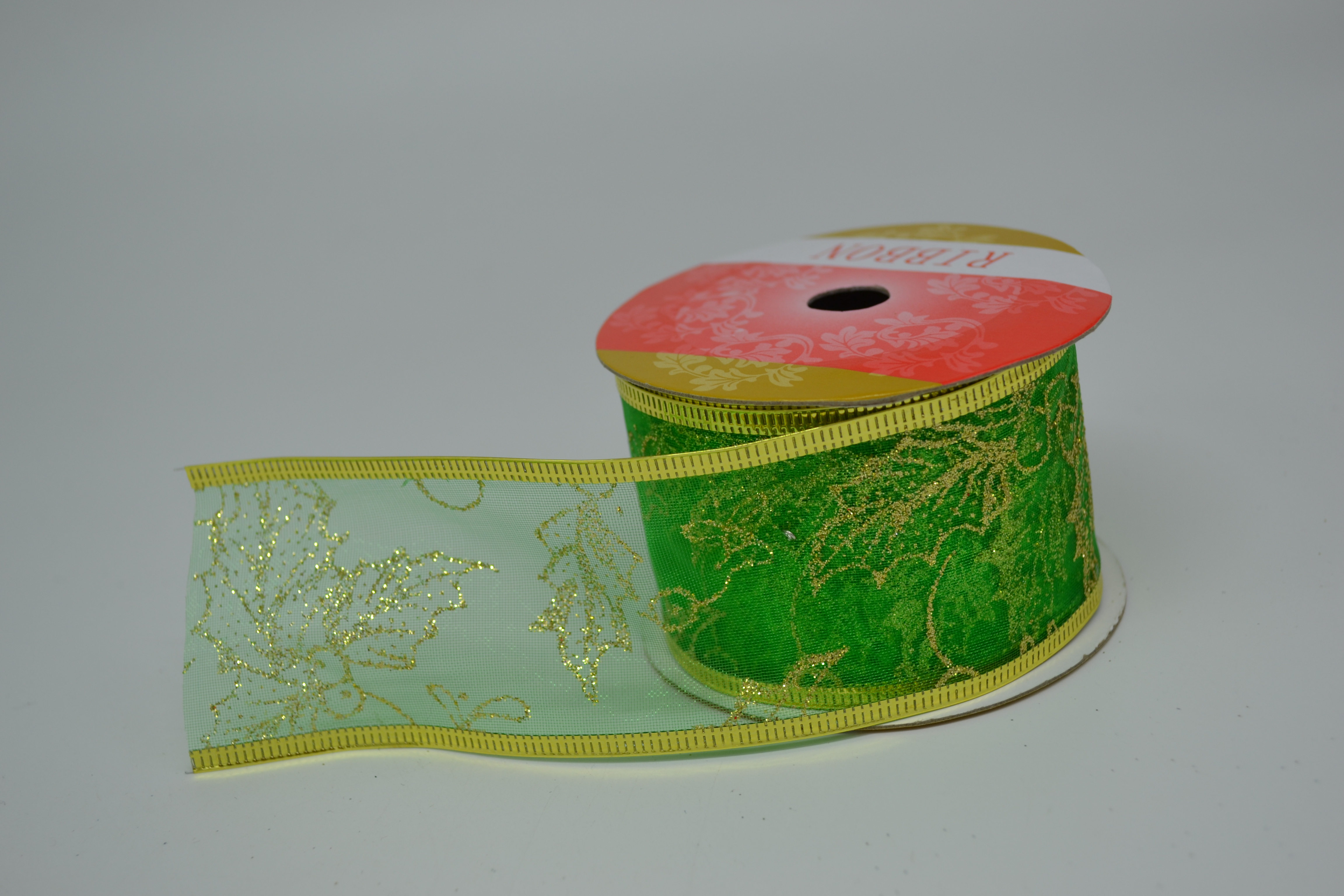 Лента декоративная с проволочным краем 5 см*2,7 м зелёная 11/13
