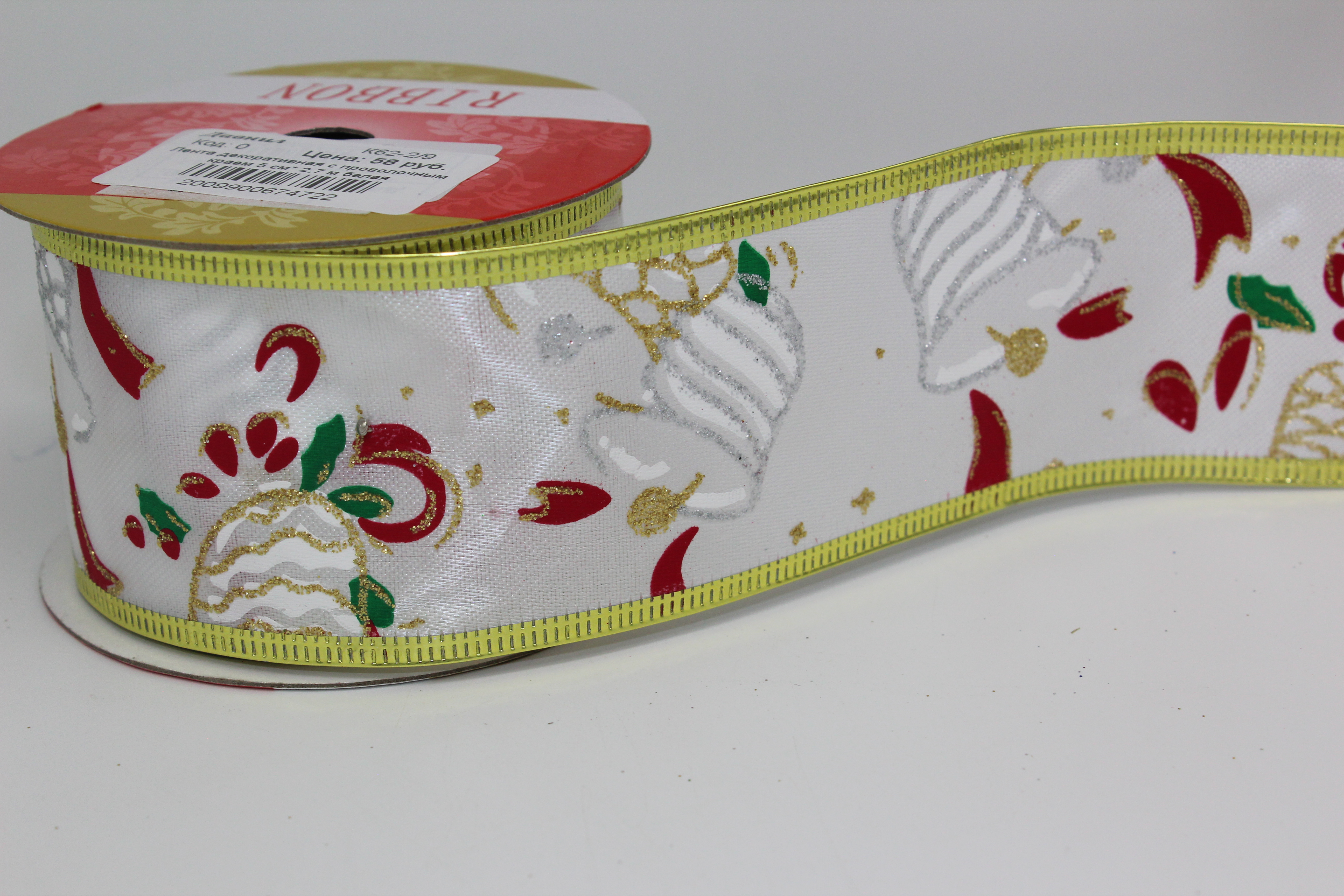 Лента декоративная с проволочным краем 5 см* 2,7 м белая 2/9