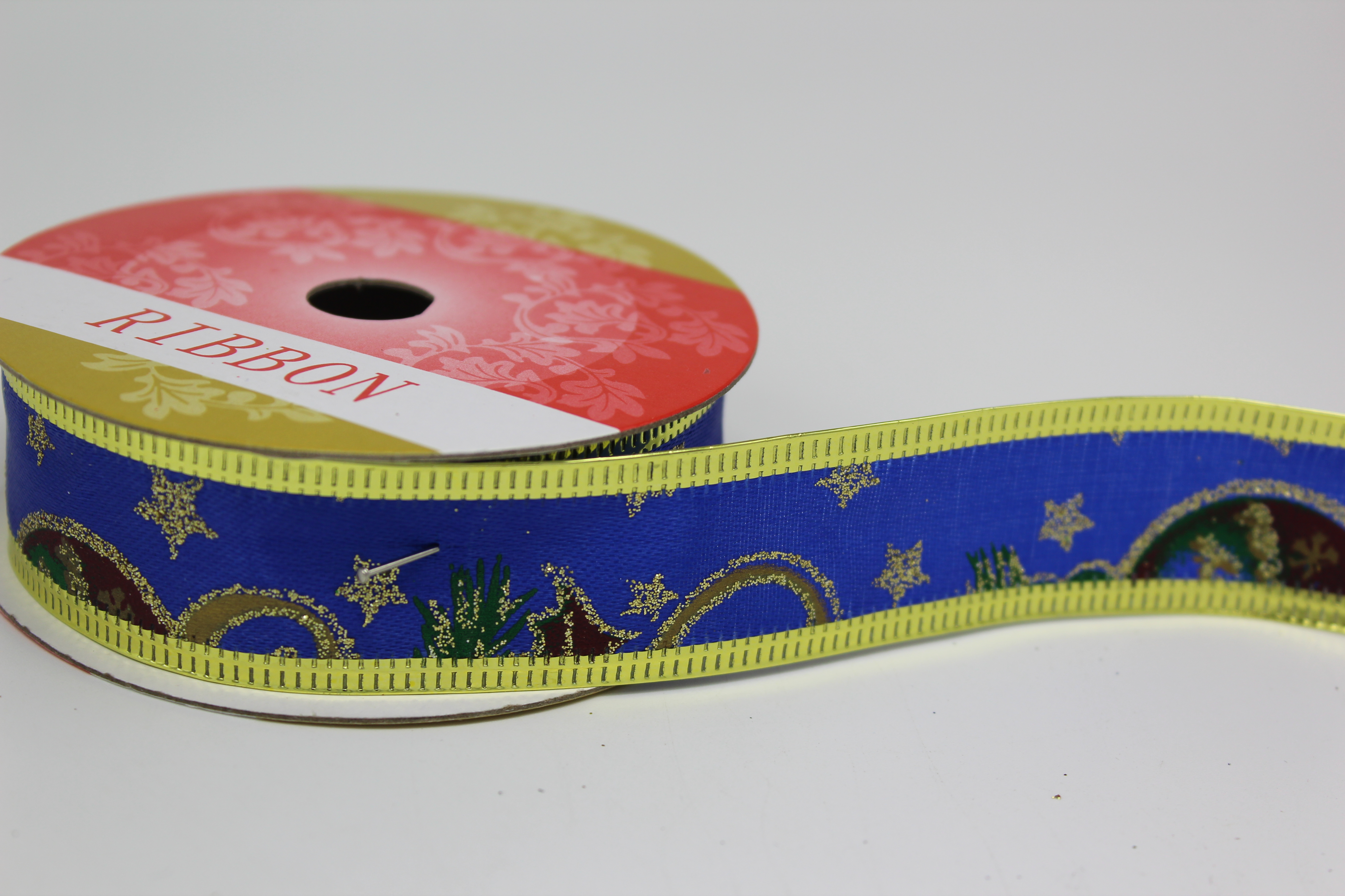 Лента декоративная с проволочным краем 2,5 см* 2,7 м синяя 4/18