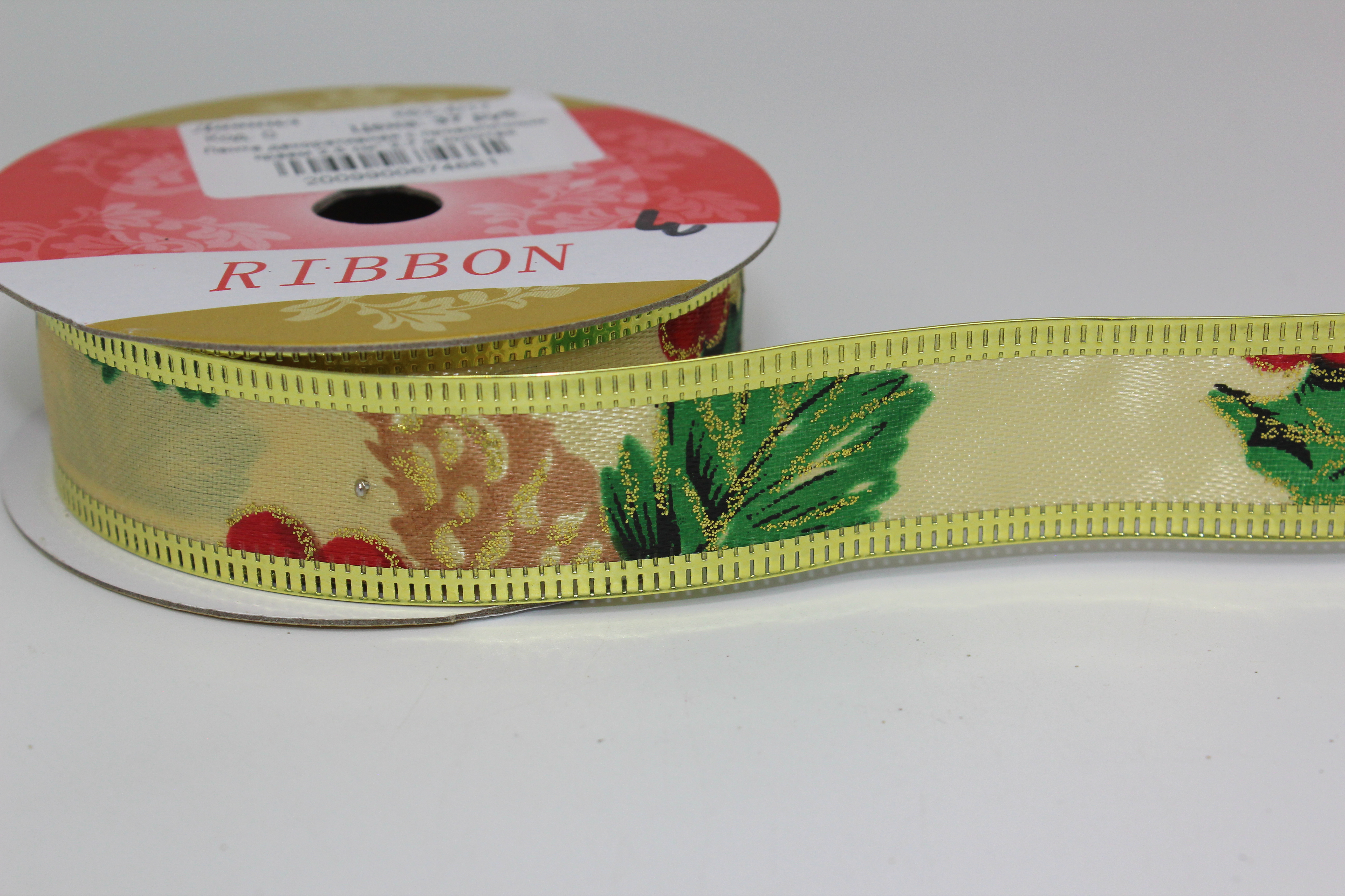 Лента декоративная с проволочным краем 2,5 см* 2,7 м золотая 4/11