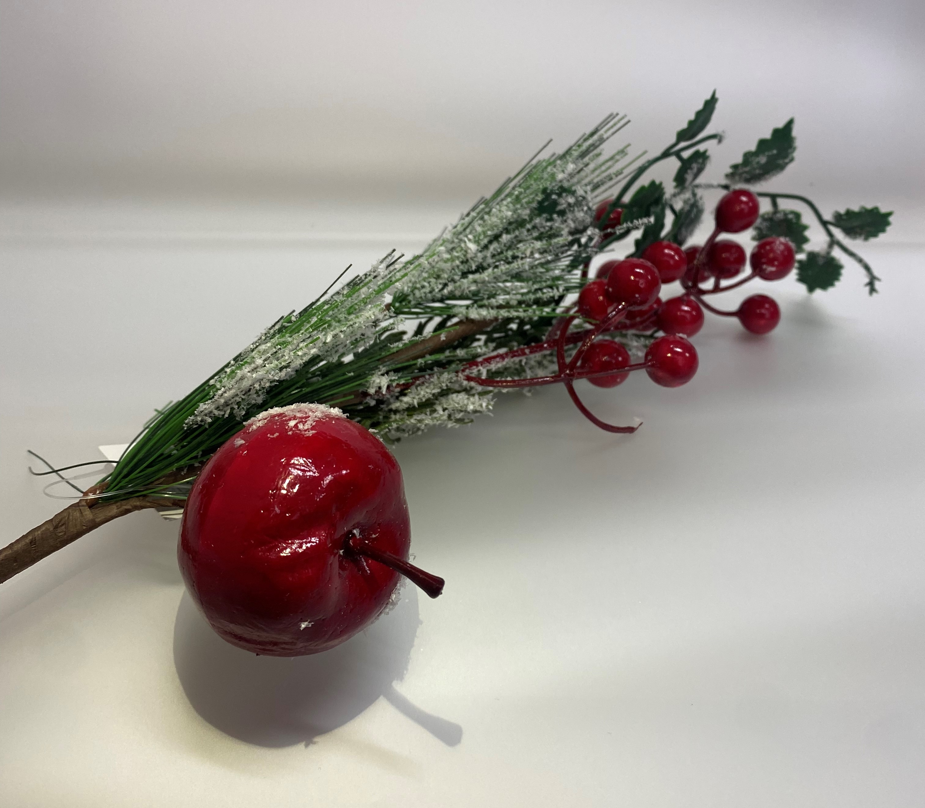 Новогодняя декоративная веточка 42 см L20-712 рябина с яблочком