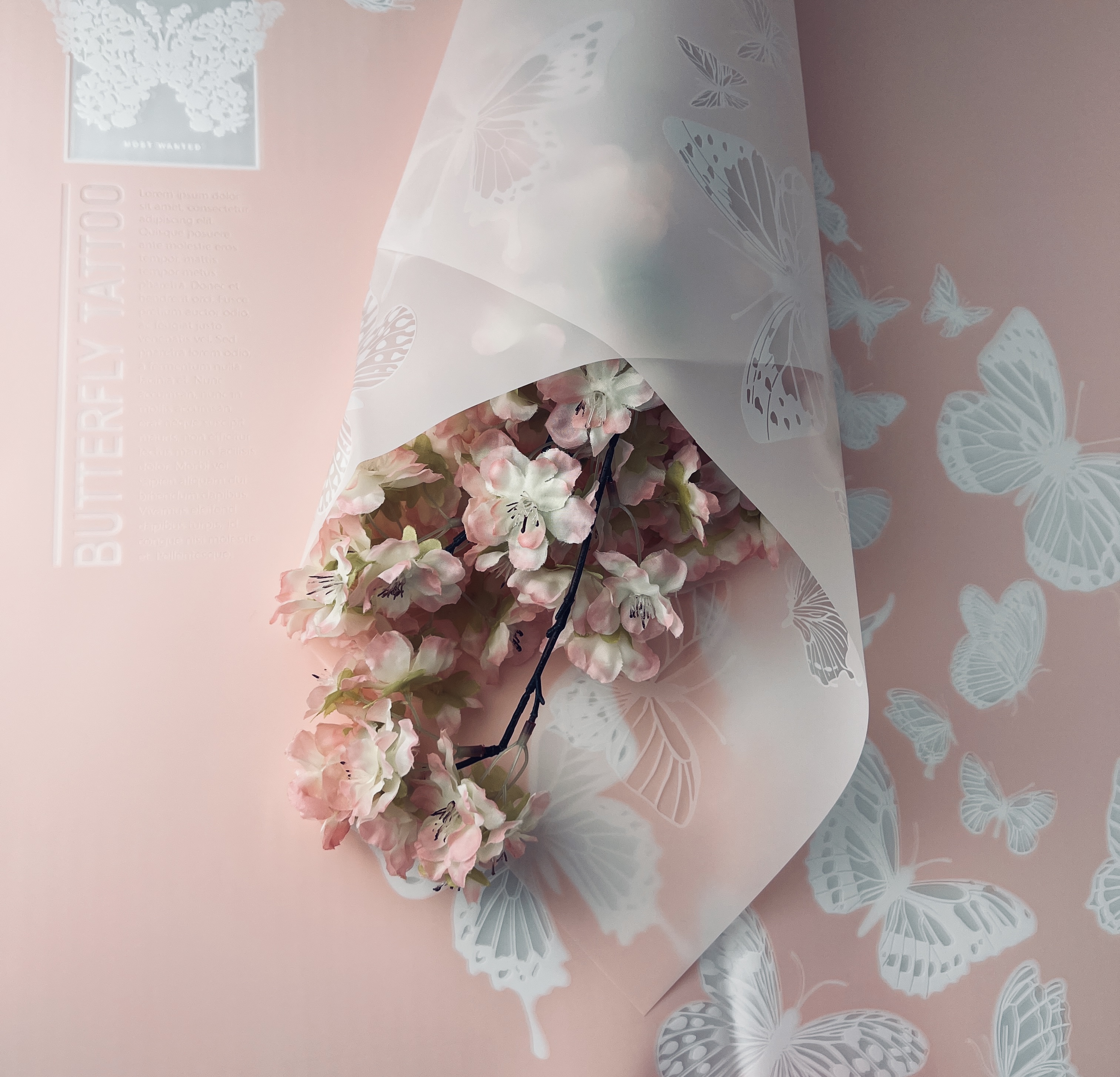 Плёнка для цветов "вишенка" 56*56 см 20 шт розовая 03