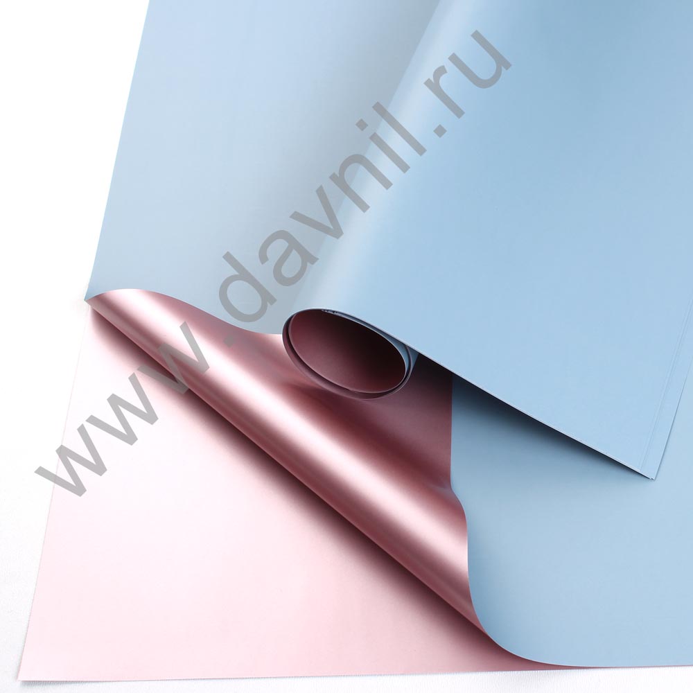 Плёнка для цветов двухсторонняя с розовым отворотом 58*58 20 шт голубая 108