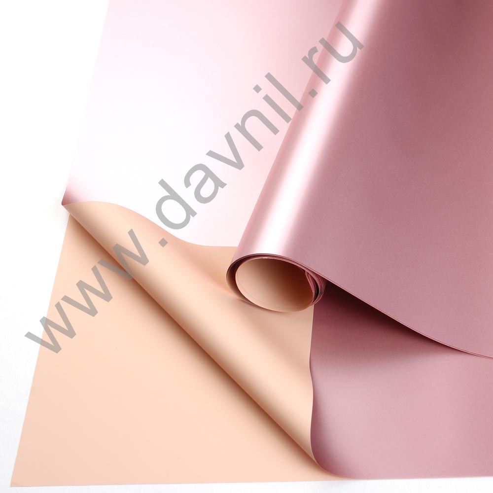 Плёнка для цветов двухсторонняя с розовым отворотом 58*58 20 шт персик 058