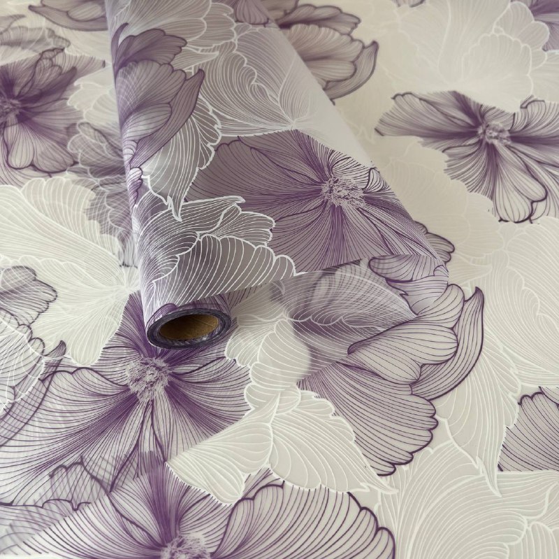Плёнка для цветов 56 см*10 м с рисованным цветочным принтом сиренево-виноградный 04