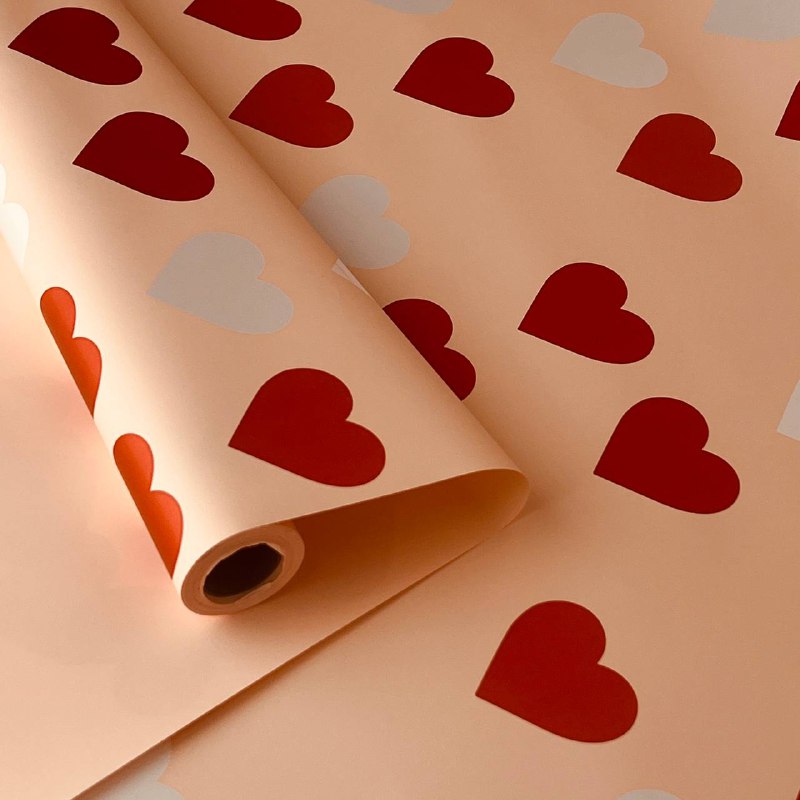 Плёнка для цветов "неоновое сердце" 56 см*10 м персиково кирпичная 05