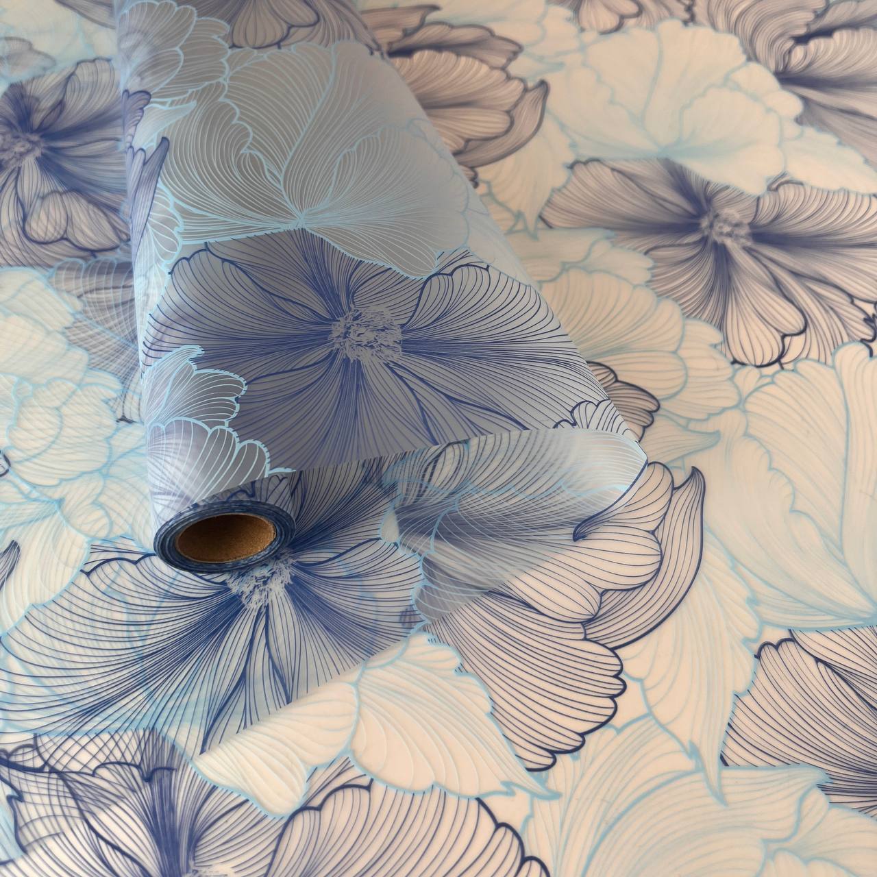Плёнка для цветов 56 см*10 м с рисованным цветочным принтом ледниково-морская 05