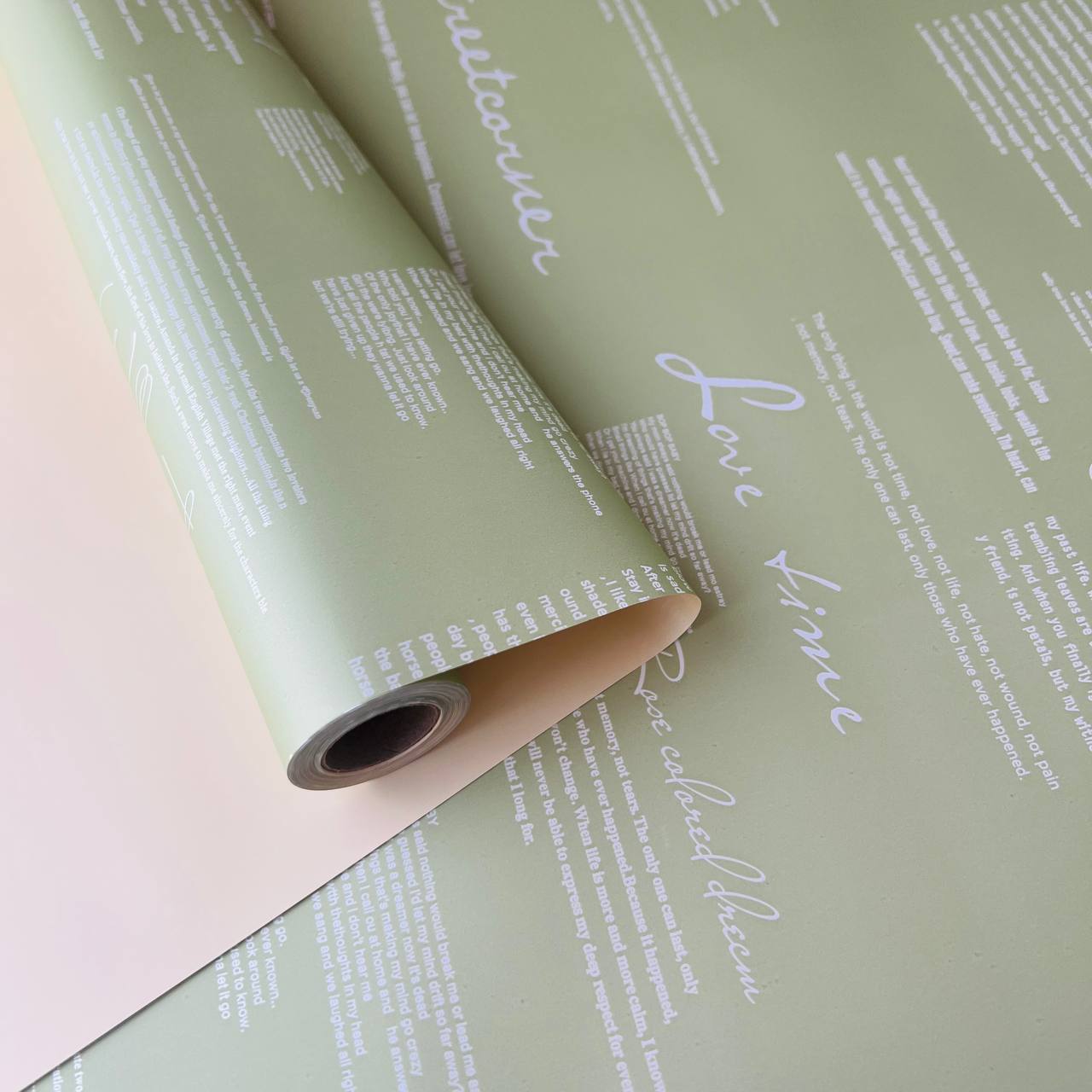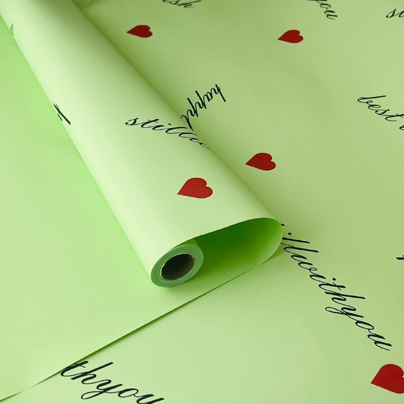 Плёнка для цветов сердце с принтом 56 см*10 м фисташковая 06