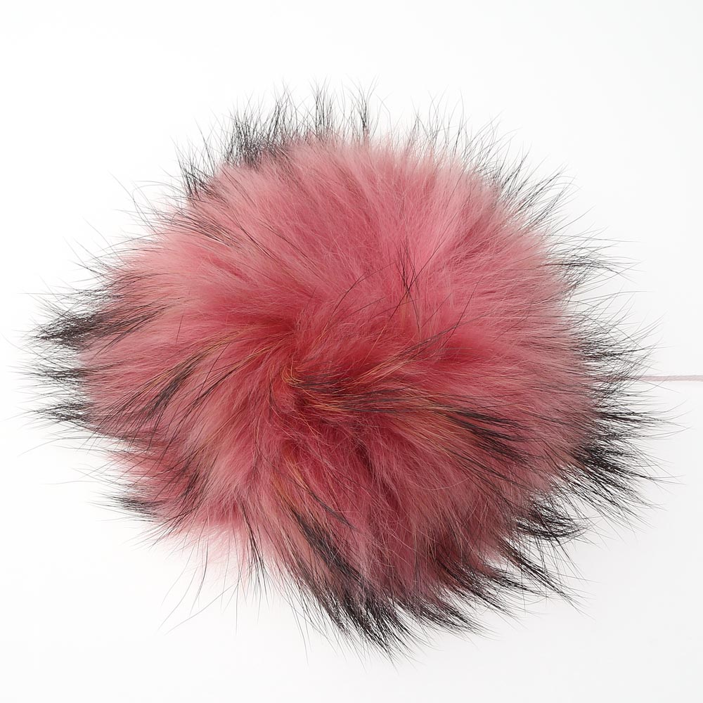 Натуральный меховой помпон с кнопкой 8 см розовый